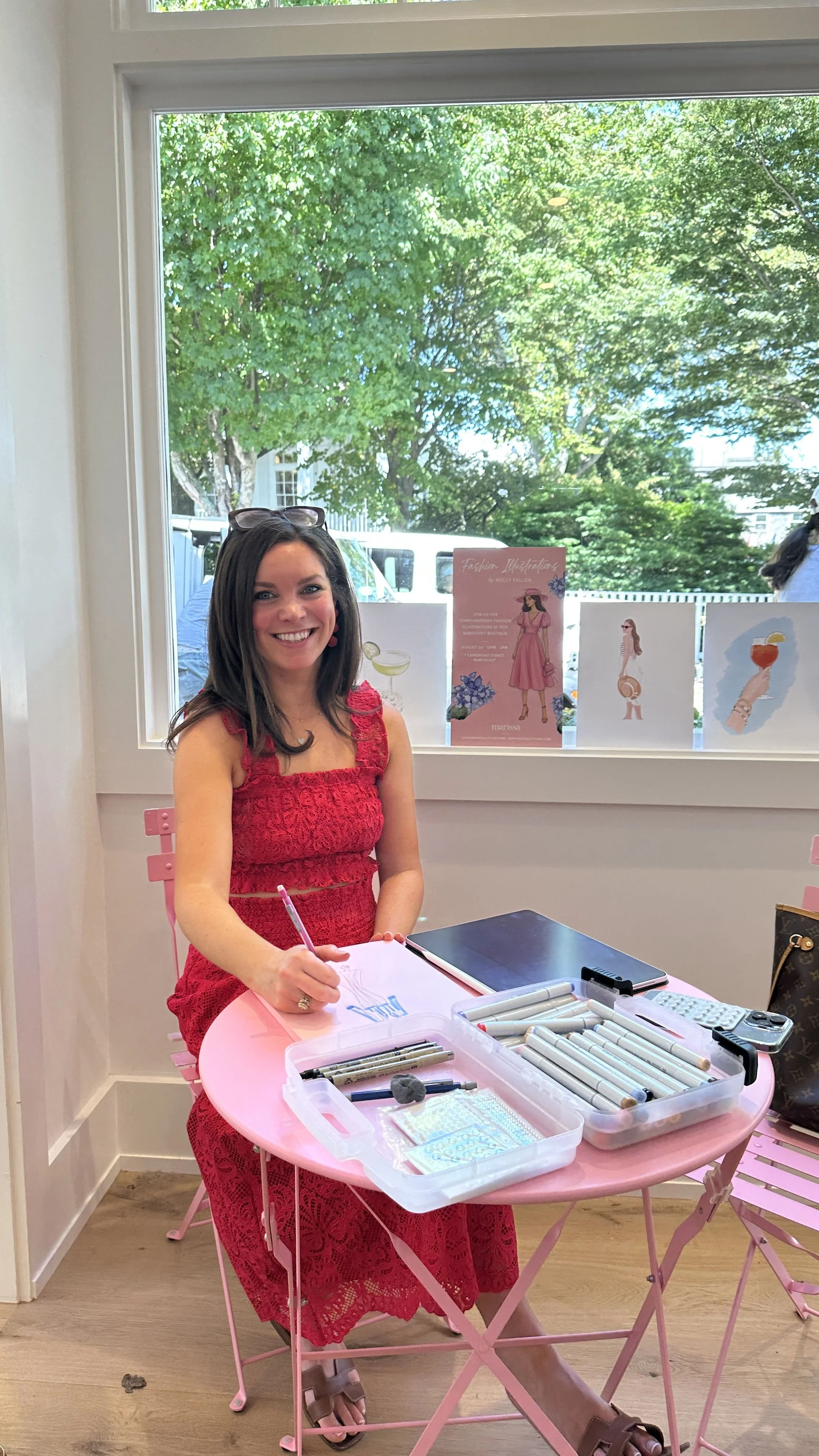 Over the summer, I had the opportunity to visit Marissa Collection’s gorgeous new location on Nantucket and live sketch right in the heart of the island. I’d been counting down the days since my first trip last year - so returning for one of the biggest weekends of the season (Labor Day!) felt like the perfect full-circle moment.