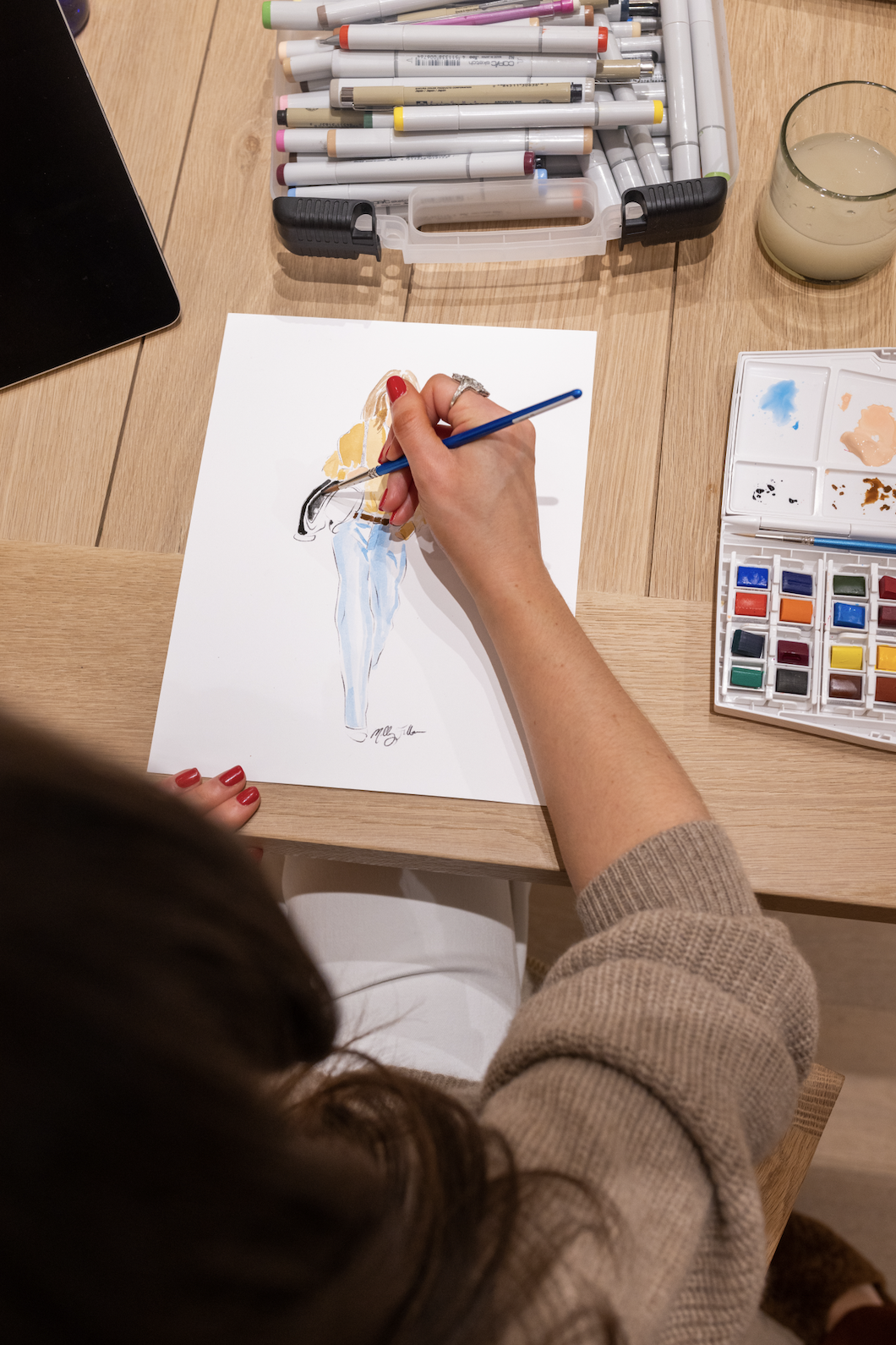Throughout the day, I sketched guests as they stopped in to shop and settle into Jenni Kayne’s signature relaxed aesthetic — effortless knits, soft neutrals, and, unexpectedly, a steady stream of King Charles Spaniels (clearly the unplanned stars of the afternoon).